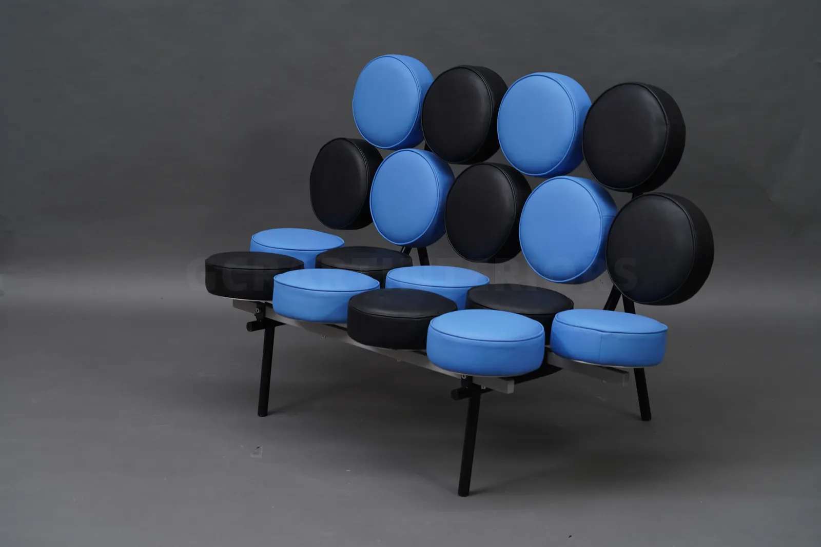 Le canapé Marshmallow, emblème du design après-guerre, incarne un chapitre optimiste et héroïque de l’histoire américaine. Reconnaissable par ses 18 coussins ronds sur une structure en métal, fabriqué dans un atelier artisanal italien, il symbolise l’apogée du modernisme. Créé par George Nelson et Irving Harper, sa production limitée entre 1956 et 1963 et sa réintroduction en 1999 par Herman Miller en font une pièce de collection incontournable.